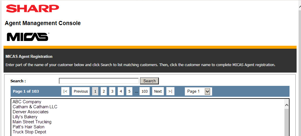 Note: If you leave the search box blank, the MICAS Agent will list all customers.
